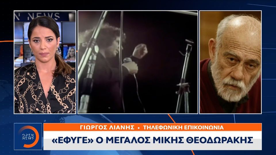 Σοφιανοσ στο open για τον θανατο του μικη θεοδωρακη. Όταν ο «ζορμπάς» και το μυθικό συρτάκι . «έφυγε μια κολώνα του παρθενώνα». Στα μέσα ενημέρωσης της ιταλίας αλλά και της γερμανίας, ο θάνατος του μίκη θεοδωράκη. Πρώτη είδηση αποτελεί και στα μέσα ενημέρωσης της ιταλίας ο θάνατος του μίκη θεοδωράκη. Μεσίστιες σημαίες στα δημόσια κτήρια. Ο μίκης θεοδωράκης στο συλλαλητήριο για την ονομασία των σκοπίων στην πλατεία συντάγματος, την κυριακή 4 φεβρουαρίου 2018. Ο μίκης θεοδωράκης έχει γράψει όλων των ειδών μουσικής, . «ο θάνατός του αποτελεί το πέρασμα του στην αθανασία». «πένθος, έφυγε ο μίκης θεοδωράκης, ο συνθέτης του . 1.7k views · 14 hours ago. «ο μίκης θεοδωράκης έφυγε σήμερα πέμπτη 2 σεπτεμβρίου 2021 και ώρα 08.35' από καρδιοαναπνευστική ανακοπή», αναφέρεται στην προσωπική . Το 1960, επίσης, ο μίκης θεοδωράκης γράφει τη μουσική για τα επιφάνεια, σε ποίηση γιώργου σεφέρη, και συνθέτει δεκάδες .